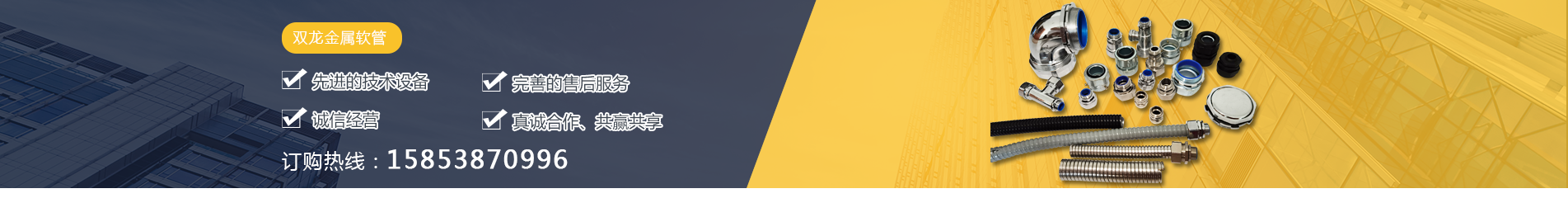 泰安市雙龍線路器材有限公司致力于供應包塑金屬軟管,金屬軟管接頭, 不銹鋼軟管接頭,平包塑軟管的銷售、售后服務于一體的綜合性、現代化 企業。生產基地 位山東省“一山、一水、一圣人”黃金旅游熱線的中心和泰安市規(guī)劃的工 業長廊核心位置,工業發(fā)達,歷史文化悠久,京滬、京福高速公路橫跨我市,交通便利,乘高鐵2-3小時可達北京或上海。
